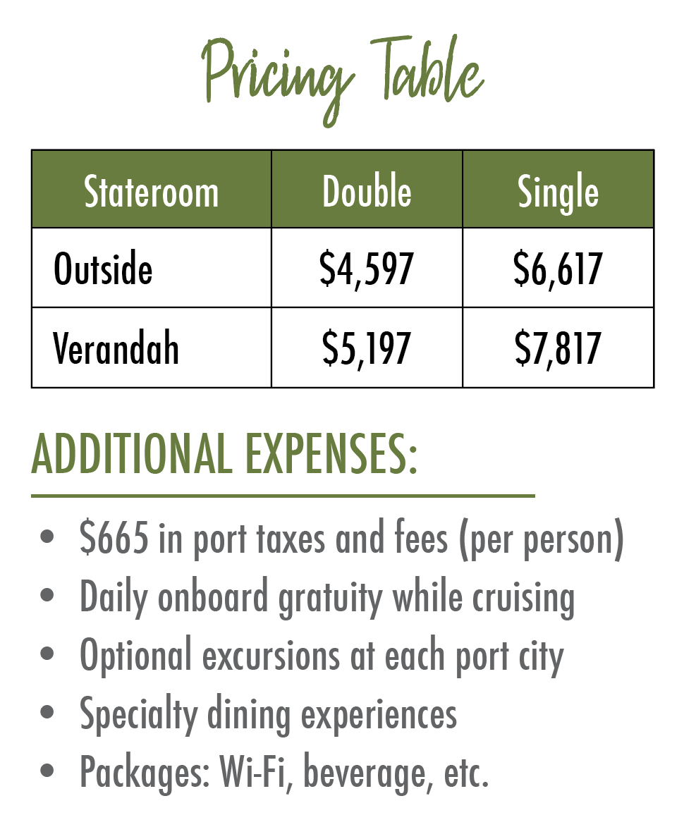 With relaxing sea days, comfortable accommodations, enriching destinations, and the camaraderie of fellow travelers, this unforgettable journey blends discovery, scenery, and tropical adventure.